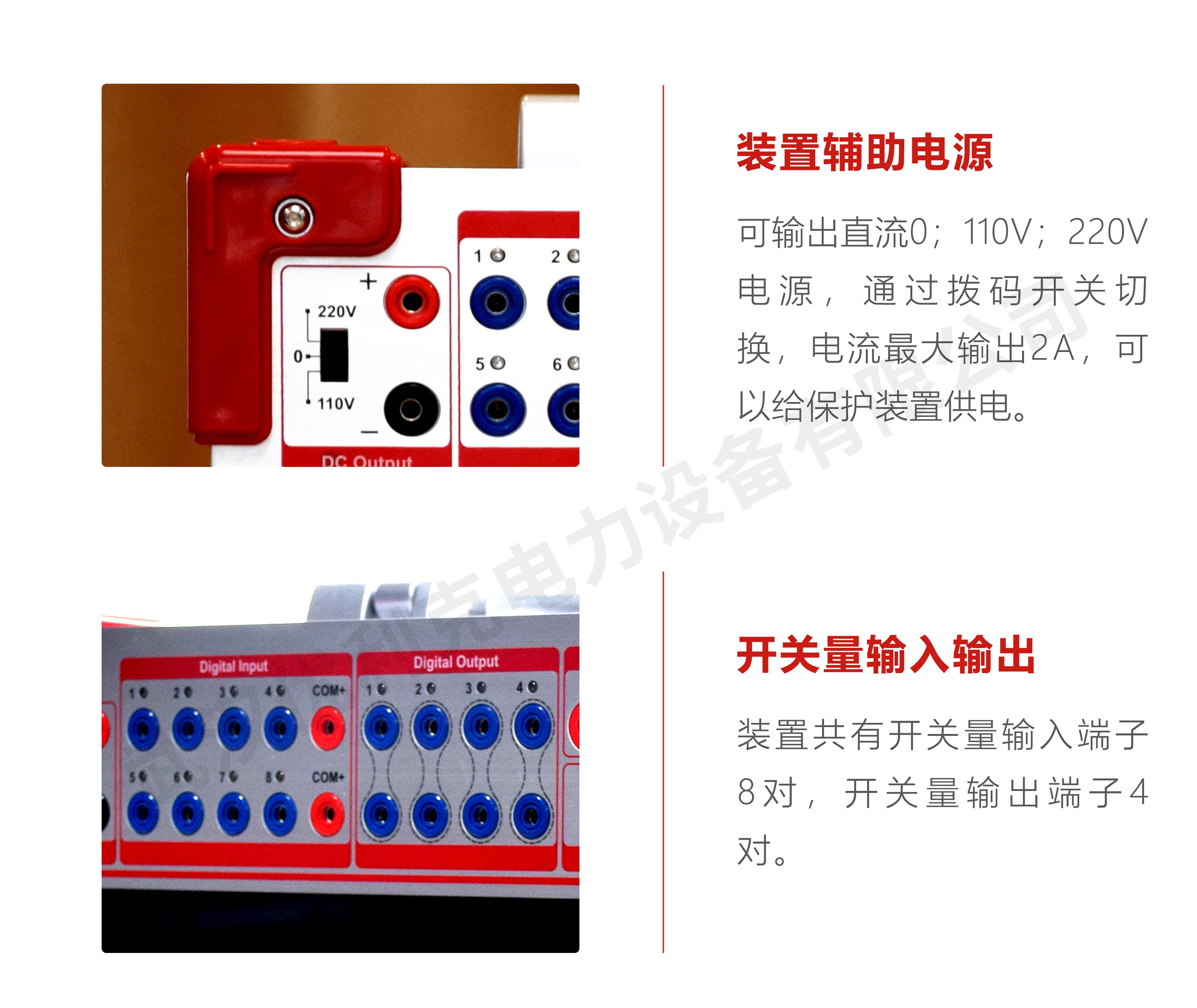 本設(shè)備配有獨立專用直流輔助電壓源輸出,輸出電壓分別為110V(1A),220V(0.6A)。以提供給需要直流工作電源的繼電器或保護裝置使用。