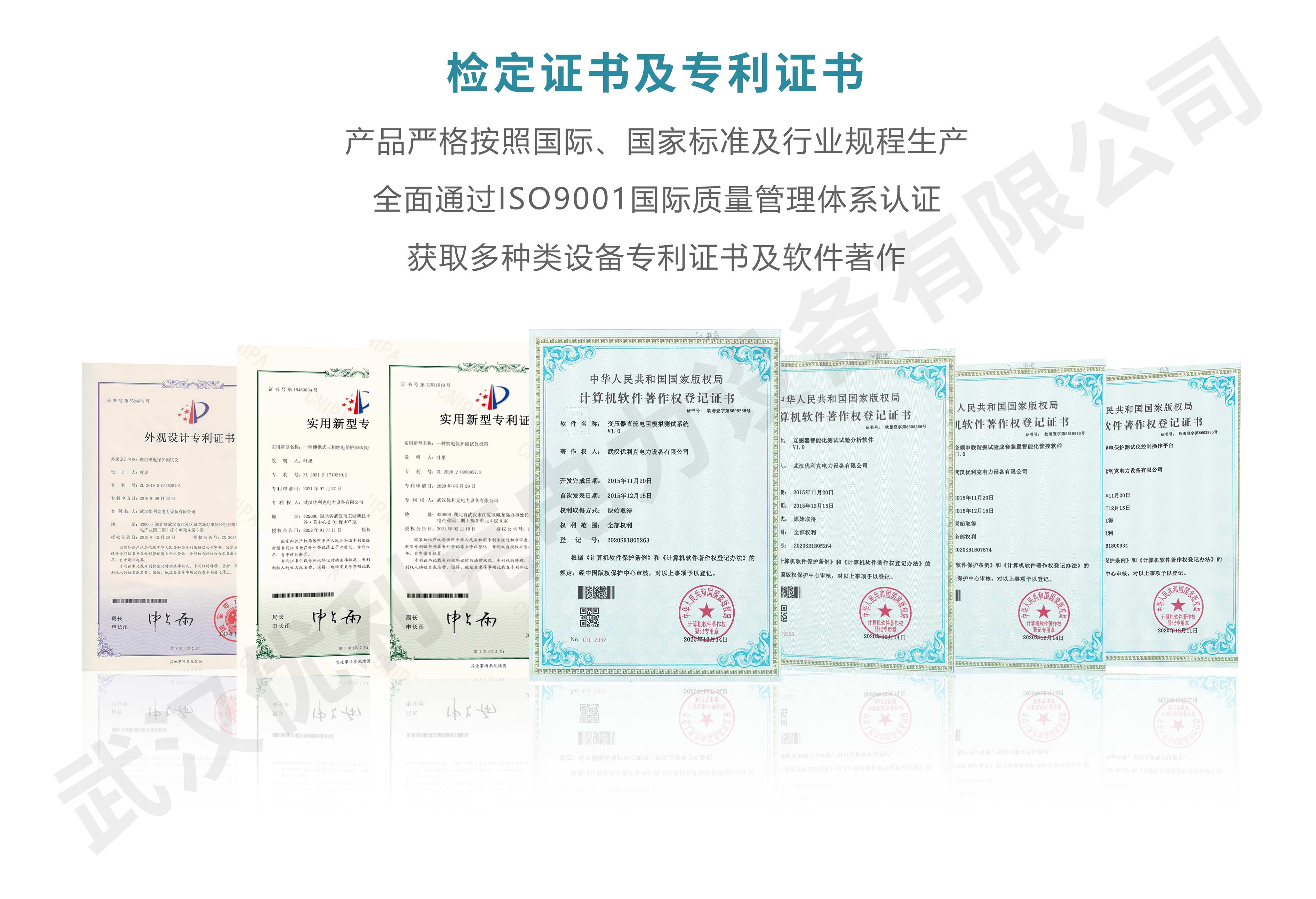 企業產品嚴格按照國際、國家標準及行業規程生產,通過國家、各省級、市級電力研究所、計量中心及電力權威部門的檢測,全面通過ISO9001國際質量管理體系認證、中華人民共和國制造計量器具許可證、GB/T19001-2016質量管理體系要求、GB/T24001-2016環境管理體系要求、GB/T45001-2020職業健康安全管理體系要求。